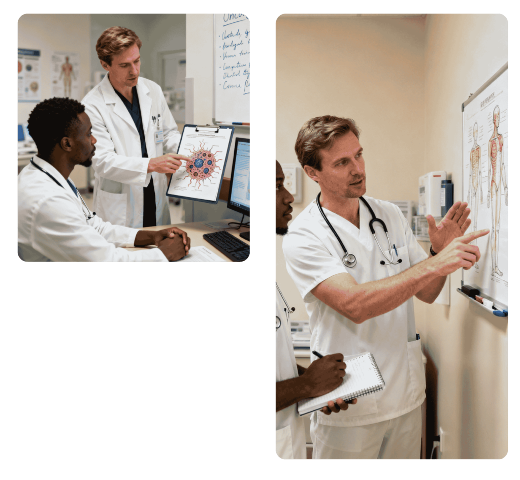 Durckheim AB supports the training of African healthcare professionals by facilitating knowledge transfer from Scandinavian oncology specialists, helping hospitals develop the skills and clinical capacity needed to diagnose and treat cancer effectively within their own healthcare systems.